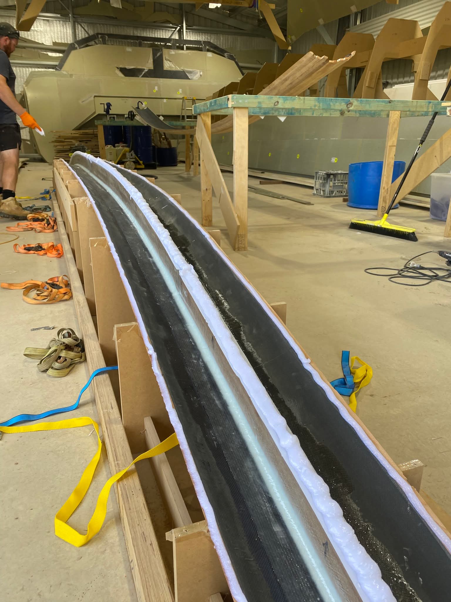 Our goal is to have the bridge deck and both hulls fully completed in May, ready to start installing bulkheads and bridge deck in June.