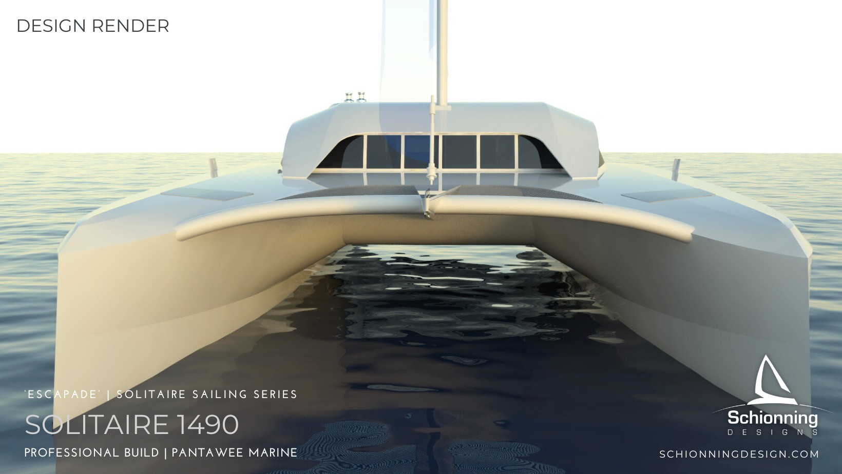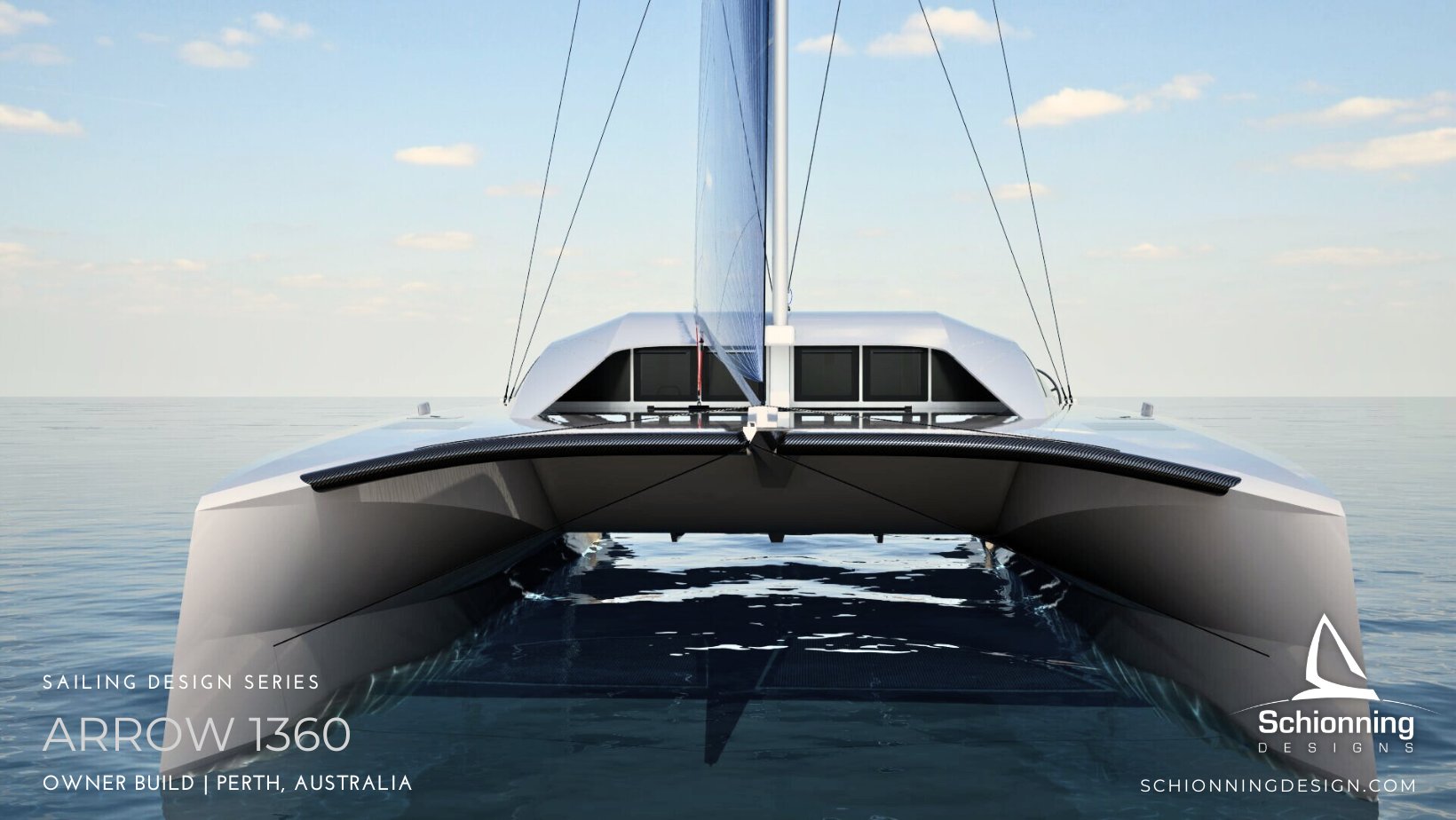Play Video about Schionning Designs Arrow 1400S Catamaran Design - the Arrow 1400S is unmistakably a Schionning Design. With the Arrow 1400S' high performance-driven, sleek, contemporary silhouette that radiates power and grace. Every element has been thoughtfully refined with the Arrow 1400S' flowing side panels, crisp edges, aerodynamic profile, maximised interior spaces, storage, and comfort ~ Proof that efficiency and high performance can be luxurious! View the Exterior CAD Renders of the Arrow 1400S